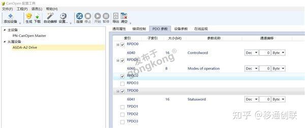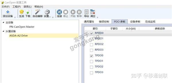 6,设置从站PDO参数,在PDO处右键添加索引参数。RPDO对应canopen转profinet(YT-PN-02)网关的发送,TPDO对应网关的